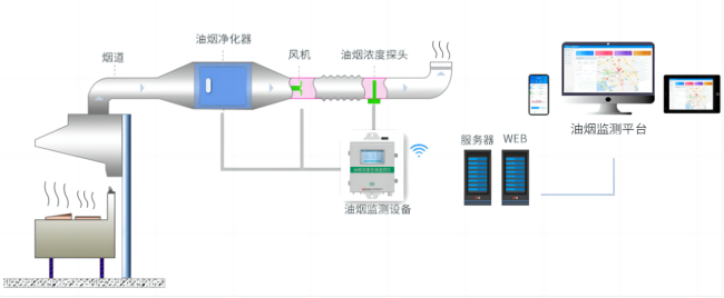 油煙污染的在線監測可以快速、準確和連續的監測油煙凈化 設備的工作情況和油煙的凈化與排放情況。與傳統監測手段相比,它具有高度的實時性、同步性、造價低、布點靈活、施工快捷等一系列優勢。