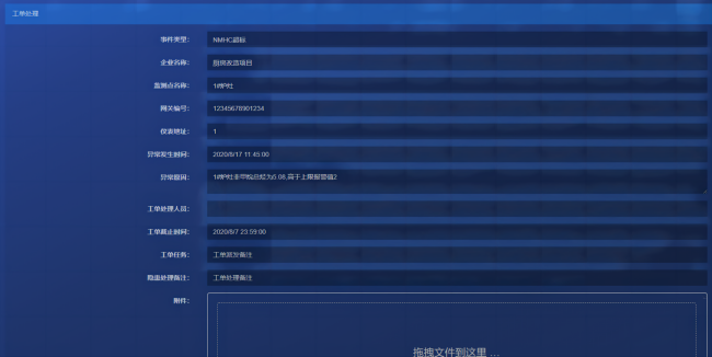 后臺根據測點設置的濃度閾值以及門限時間在隱患巡查中產生對應的報警信息,并在首頁進行鈴鐺和語音提示。企業用戶對隱患進行確認,確認工單派發對象,工單截至期限,以及工單任務描述;運維人員確認工單內容并對隱患進行處理,填寫處理結果詳情,上傳現場圖片等附件或進行二級派發;相關企業用戶可在“隱患記錄”頁面來確認對應隱患信息的處理進度,包括是否處理、是否派發。