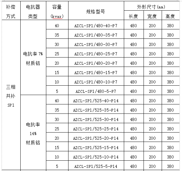 AZCL系列智能電容器選型: