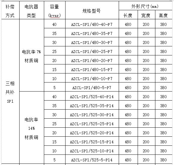 AZCL系列智能電容器選型: