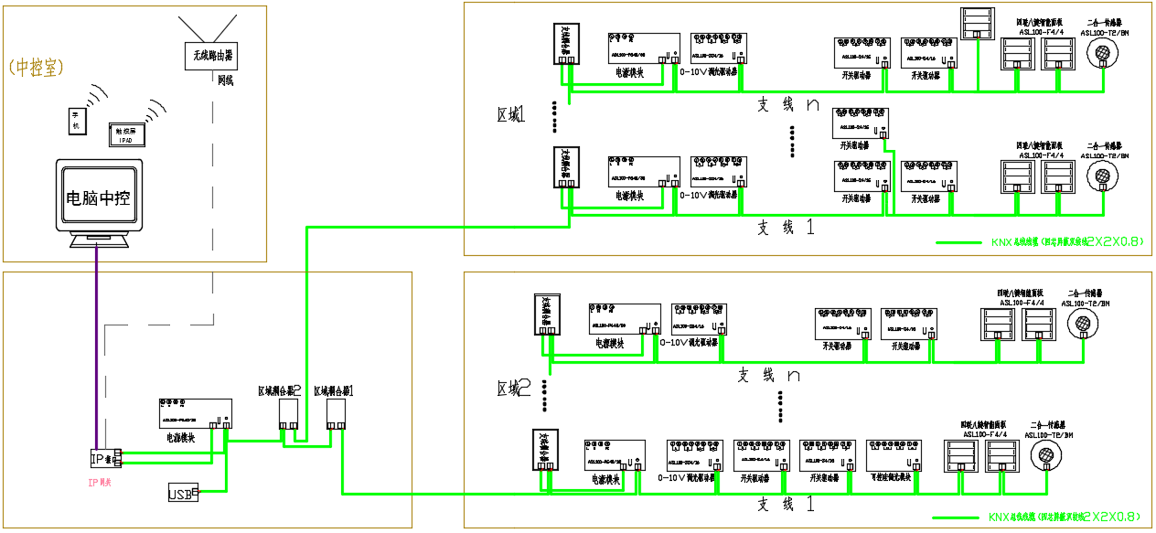 4)系統(tǒng)采用分布分布式KNX總線結(jié)構,搭建簡單靈活,系統(tǒng)內(nèi)各模塊互不影響,可獨立工作,可靠性更高;