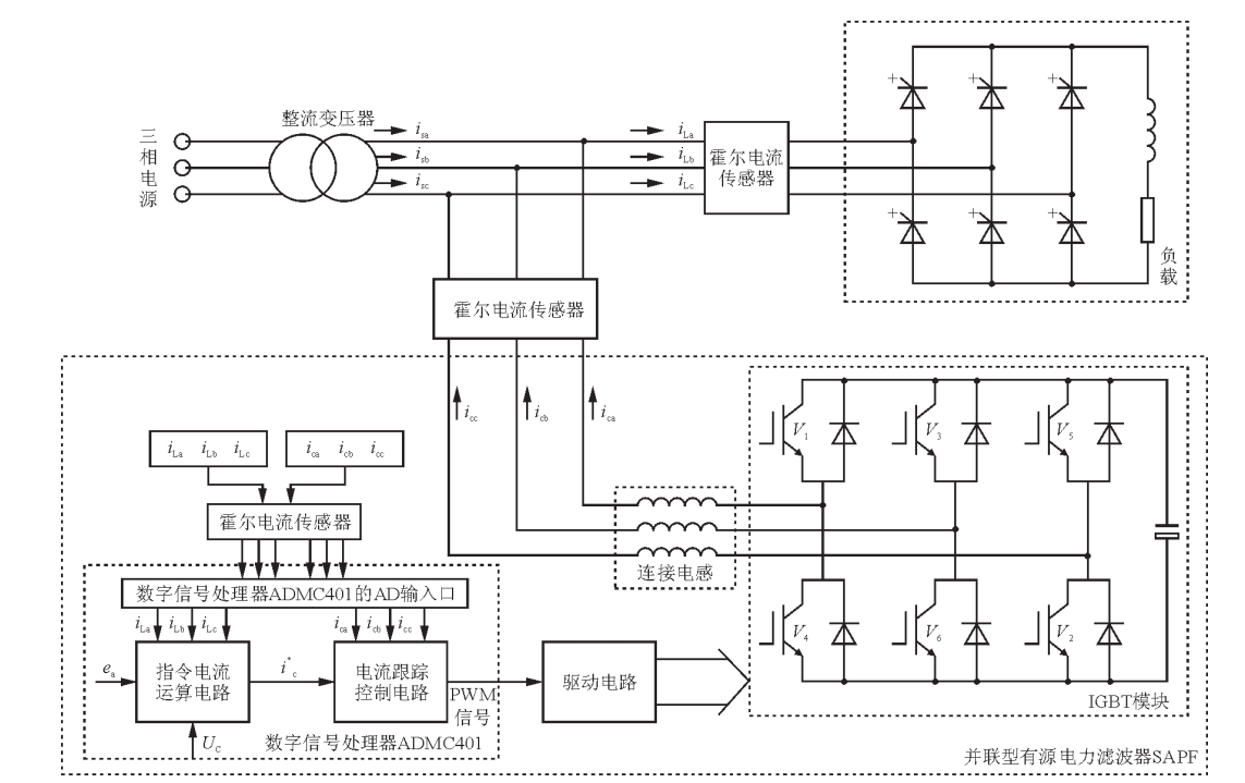 近年來(lái),諧波抑制,提高電能質(zhì)量已成為電力電子技術(shù)、電氣自動(dòng)化技術(shù)及電力系統(tǒng)研究領(lǐng)域的一個(gè)重大課題。而APF由于其自身的很多優(yōu)點(diǎn),已經(jīng)成為目前諧波抑制的一個(gè)發(fā)展趨勢(shì)。由于目前電流型諧波源在電網(wǎng)中的比例很大,實(shí)際應(yīng)用的裝置多為并聯(lián)型有源電力濾波器(SAPF)。