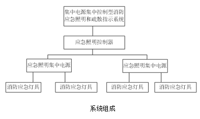 消防應急照明和疏散指示系統由主機(主機)、集中電源(供電)和燈具(疏散指示燈、應急照明燈)等幾部分組成。如下圖: