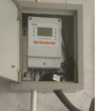 現場采用壁掛式的安裝方式,將保護器安裝在安裝箱中,然后通過安裝箱的開孔將保護器接入到配電線路中,然后從保護器中年將出線引出到末端回路,將與保護器配套的傳感器安裝在相應的位置,完成電氣防火限流式保護器的安裝,現場安裝圖片如下: