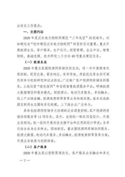 2019年12月2日國家電網有限公司(下稱“國網公司”)發布了國家電網互聯[2019]850號文《泛在電力物聯網2020年重點建設任務大綱》,對建設電力泛在物聯網有關工作進行部署,重點開展能源生態、客戶服務、生產運行、經營管理、企業中臺、智慧物聯、基礎支撐、技術研究八個方向40項重點建設任務,內容摘錄如下: