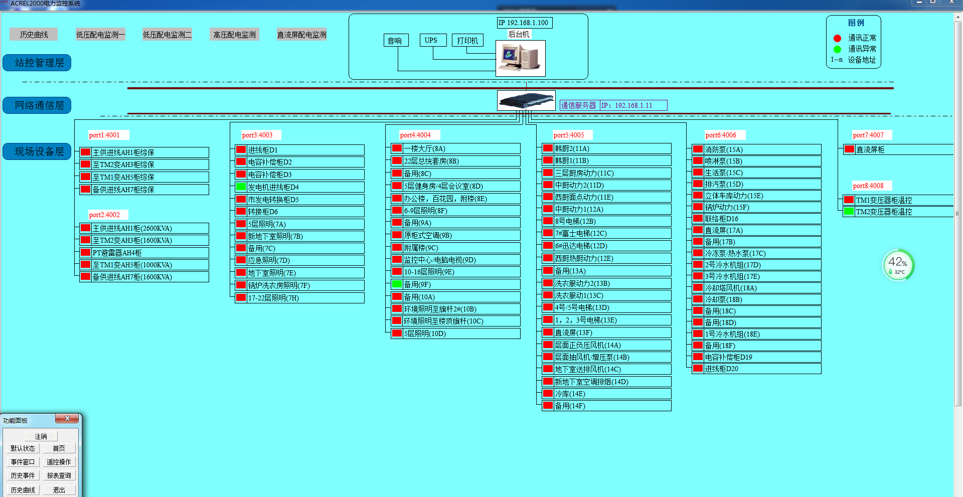 本次項目主要涉及湖北保利大酒店配電房內的網絡多功能儀表、微機保護、直流屏等設備,監控主機位于地下1層的值班室