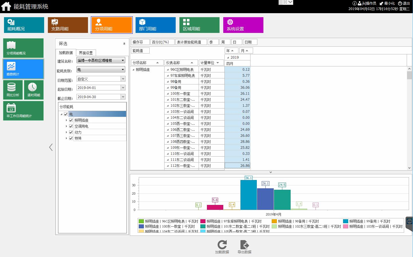 分類能耗支路用能統計報表