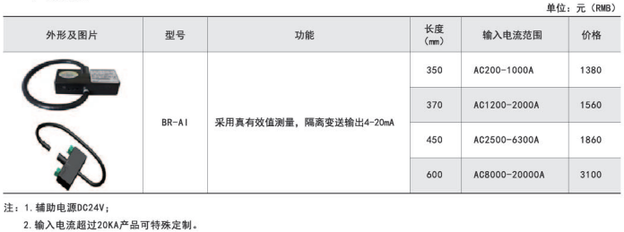 技術(shù)要求:輸入電流AC1000A;輸出DC4-20mA;準(zhǔn)確級(jí)0.5;長(zhǎng)度350mm。