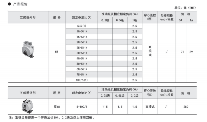 一次電流小,容量2.5VA及以下,用于測量或者保護,多用于低壓抽屜柜等小空間場所。