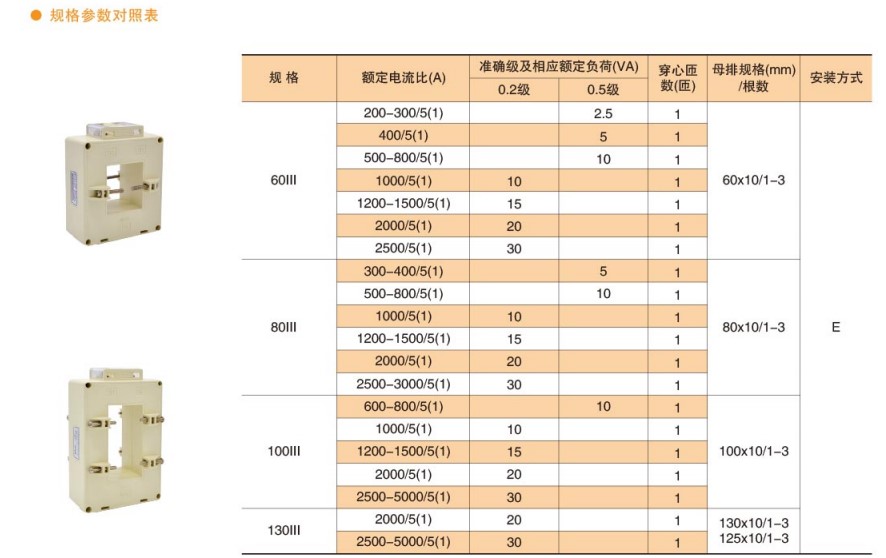 臥式方孔型,可穿越1-6根匯流排,亦可穿越多根電纜,一般與電氣測(cè)量?jī)x表配套使用,廣泛應(yīng)用于電氣成套。