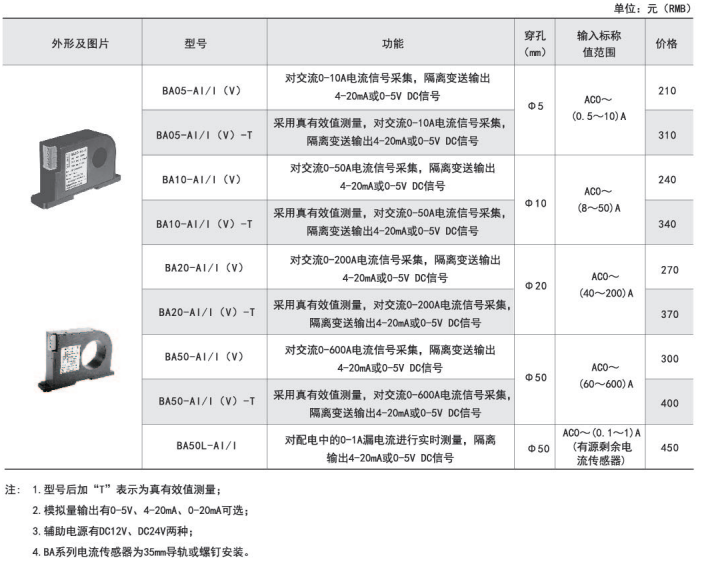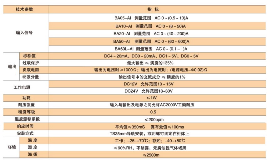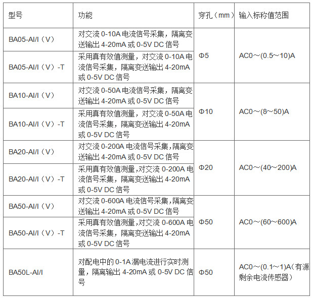BA系列產品應用電磁感應原理,對電網中的交流電流進行實時測量,將其隔離變換為標準的直流信號輸出