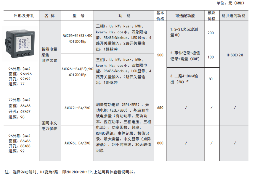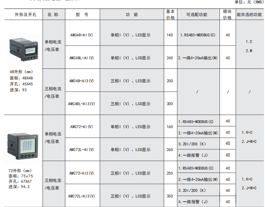 AMC 系列可編程智能電測儀表是針對電力系統、工礦企業、公用設施、智能大廈的電力監控需求而設計的智能儀表,它集成電力參數的測量(如單相或者三相的電流、電壓、有功功率、無功功率、視在功率、頻率、功率因數)以及電能監測和考核管理。