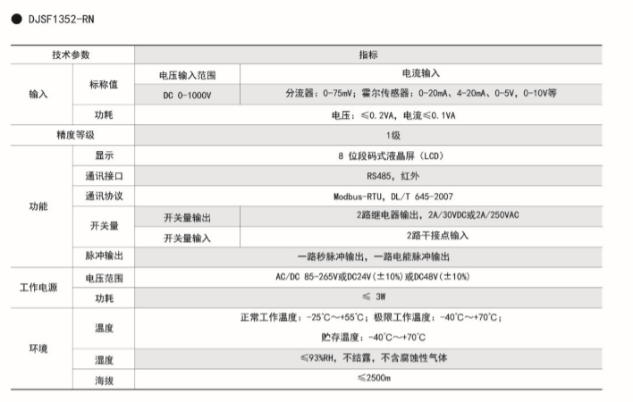 儀表可具有紅外通訊接口和RS-485通訊接口,同時支持Modbus-RTU協議和DLT645-97(07)協議;可 帶繼電器報警輸出和開關量輸入功能;根據不同要求,通過儀表面板按鍵,對變比、報警、通訊進行設 置;具有開關量事件記錄(Modbus協議)、編程和事件設置記錄(645協議)、數據瞬時和定時凍結功 能(645協議)、電壓電流功率最大值、最小值記錄功能。
