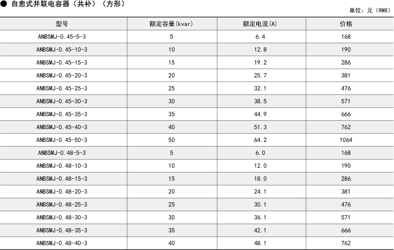 2)額定電壓:三相 450V、480V、525V;分補 250V、280V、300V。