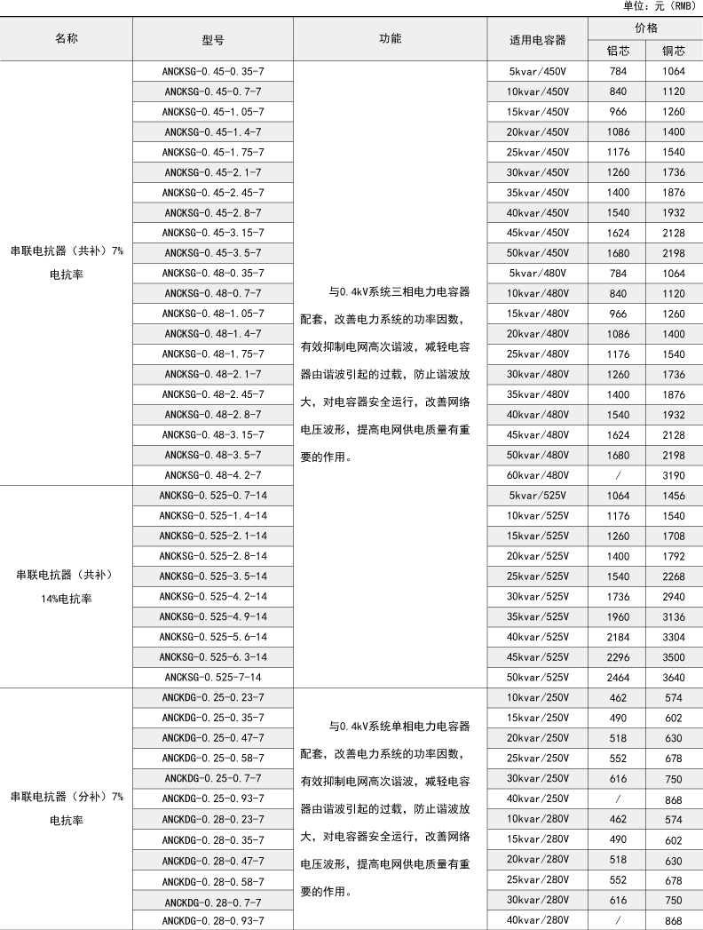 ANCK系列串聯(lián)電抗器與ANBSMJ系列自愈式低壓并聯(lián)電容器配套使用,主要用于提高0.4kV電力系統(tǒng)的功率因數(shù),有效抑制電網(wǎng)的高次諧波,減輕電容器由諧波引起的過(guò)載,防止諧波放大,對(duì)電容器的安全運(yùn)行,改善網(wǎng)絡(luò)電壓波形,提高供電質(zhì)量和電網(wǎng)安全經(jīng)濟(jì)運(yùn)行起良好作用。