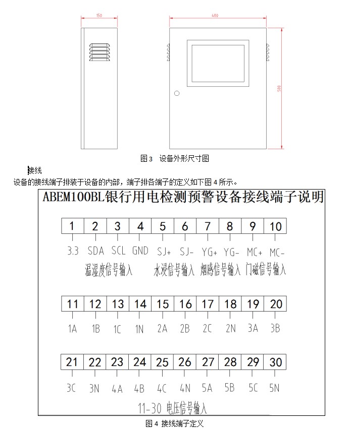 ABEM100BL型銀行用電檢測(cè)預(yù)警設(shè)備(以下簡(jiǎn)稱“設(shè)備”)是安科瑞自主研發(fā)的集監(jiān)視、報(bào)警、管理和上傳于一體的設(shè)備,該設(shè)備主要安裝現(xiàn)場(chǎng),采用壁掛式的安裝方式,用來(lái)采集現(xiàn)場(chǎng)的各種電參量和信號(hào),主要包括故障電弧、剩余電流電流、溫度、電壓、電流、功率電能等,設(shè)備可以通過(guò)4G信號(hào)上傳至云平臺(tái)。