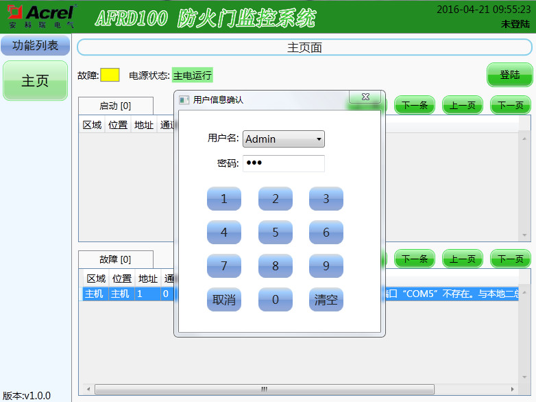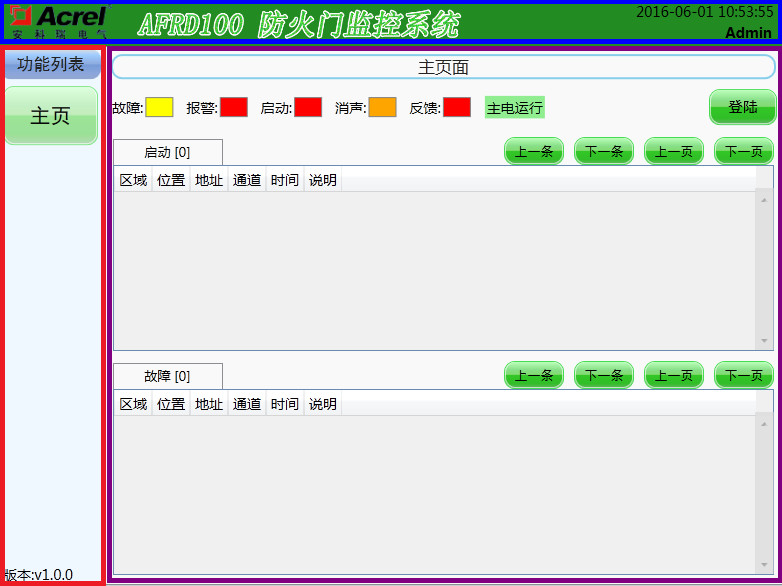 包含“登陸”按鈕、“界面標題”、“功能列表”、“系統狀態欄”四部分組成,可以快速查詢當前監控狀態,也可用于工作人員登錄操作。