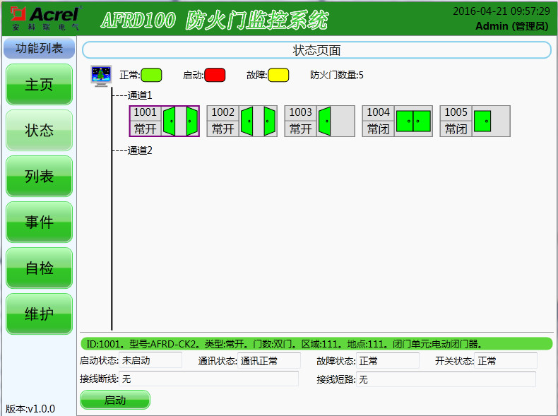 常閉單門 AFRD-CB1 接收常閉單門防火門的狀態信息并將其反饋至監控器