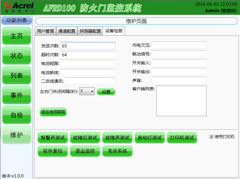 該界面可以直接查看和設置一些系統運行參數,獨立測試監控器部分功能,但只有“管理員”及其以上級別才有操作權限。