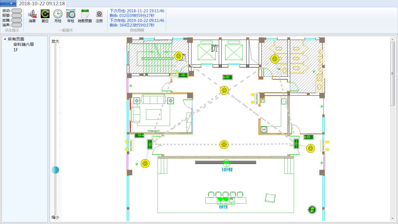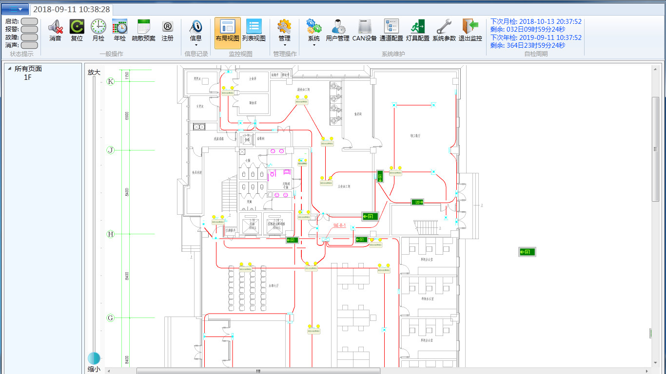 本系統(tǒng)可在“布局視圖”中平面顯示各燈具的位置與實(shí)時(shí)狀態(tài),如下圖所示: