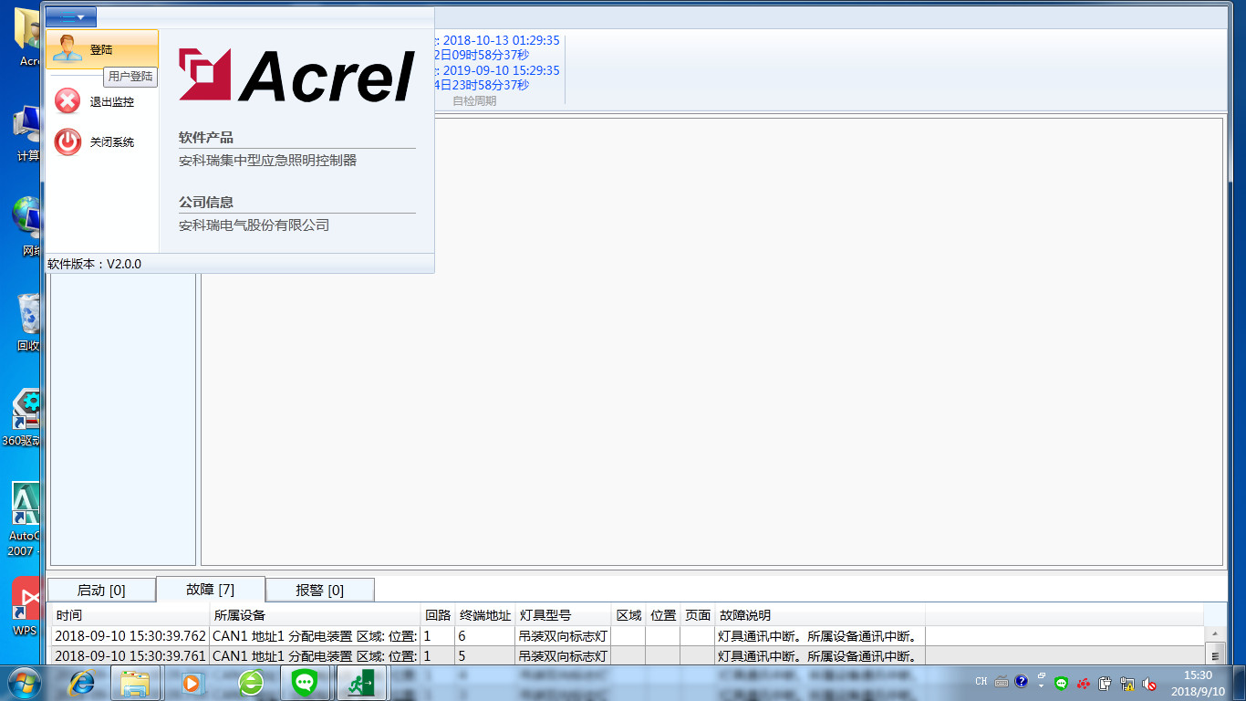 正常情況下本系統(tǒng)與消防火災(zāi)報(bào)警主機(jī)通過開關(guān)量輸入或RS232通訊方式保持相連,有火災(zāi)報(bào)警情況時(shí),本系統(tǒng)將自動(dòng)啟動(dòng)應(yīng)急狀態(tài)(標(biāo)志燈常亮、照明燈亮起)。若手動(dòng)模擬啟動(dòng)應(yīng)急與復(fù)位參考如下操作步驟:
