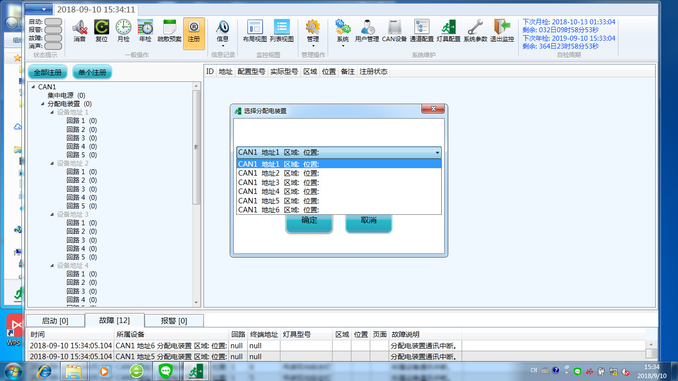 點(diǎn)擊注冊(cè)之后查看注冊(cè)情況,若在故障欄中查看通訊中斷的燈具多為同一分配電,則對(duì)此分配電進(jìn)行“單個(gè)注冊(cè)”。