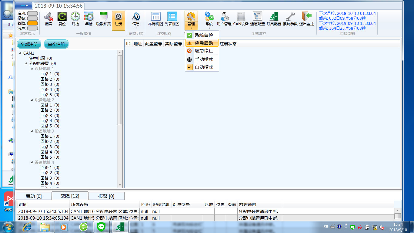 應(yīng)急啟動(dòng):在“管理”工具欄中選擇“應(yīng)急啟動(dòng)”,則本系統(tǒng)下的所有設(shè)備將進(jìn)入應(yīng)急狀態(tài)