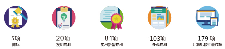 公司高度重視產品質量和研發技術創新,截止2019年底,公司擁有5項商標、20項發明專利、81項實用新型專利、103項外觀專利、19篇核心期刊專業論文、179項計算機軟件著作權,并參與多個國家或行業標準的制定。